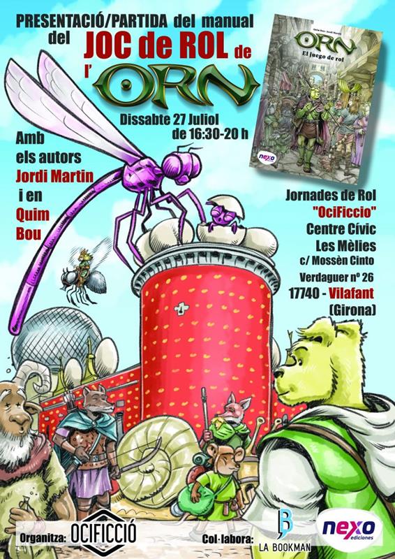 La presentació del manual de rol ORN serà a les 16:30 al Centre Cívic Les Mèlies, del carrer Mossèn Cinto Verdaguer, 26, a Vilafant, després de la presentació es faran les partides de mostra. Les inscripcions dependrán de l’organització de les jornades i del volum de gent que hi vulgui participar.