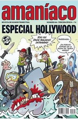 El espectáculo continua y las risas también Esto es Hollywood! Bien, bueno esto no es Hollywood, esto es el especial Hollywood de Amaníaco que sale, casi, un mes después de la ceremonia de entrega de los Premios Óscar y, no, otro año más, nosotros tampoco nos llevamos ningún Óscar, ni tampoco hay ningún Óscar en nuestro elenco de colaboradores. Pero bueno, lo que si hay aquí es espectáculo y diversión, el que encontrarás en las páginas de este número. Con otra nueva entrega de El agüelo Maki, el último capítulo de las aventuras de El viejo Holmes y el joven Watson, las desmadradas peripecias de Lina y Tino, viajeros del tiempo sin destino, una historia de gánsteres con Torpededo y muchas más cosas. Así que claqueta y acción que llega ya el Amaníaco especial Hollywood.