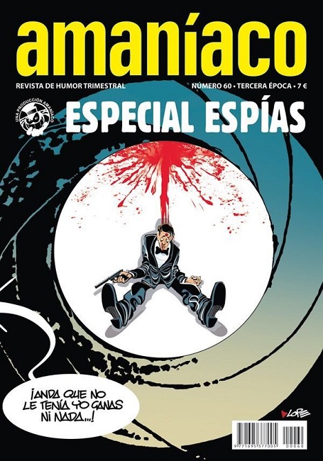 No hace falta que seas el doctor No o el malvado Goldfinger, para hacerte con el nuevo Amaníaco, el especial espías, que podrás encontrar en tu librería de cómics habitual. Sin necesidad de clave de acceso ni contraseñas, tendrás acceso a los contenidos de la revista, que no tienen nada de top secret, y con los que pasarás un buen rato echando unas risas con las locas peripecias que acontecen a los personajes de las historietas.También, como los mejores espías, pero con el lápiz en las mano, nuestros autores se convierten en esta entrega en máquinas de matar… de risa. Y una novedad. Llega un nuevo personaje a nuestras páginas, un gánster de dedo fácil, al que llaman Torpededo, una divertida parodia de L’Avi y Guillem Escriche, que se incorpora a nuestro equipo de colaboradores. Ya lo sabes, este número de Amaníaco será… solo para tus ojos.