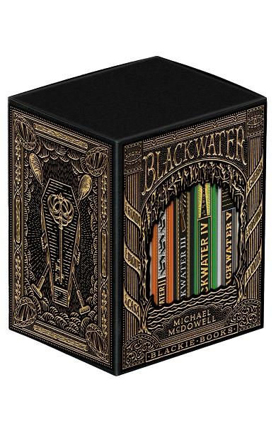 Incluye los 6 volúmenes y contenido extra exclusivo. La épica saga de la familia Caskey. Un fenómeno editorial sin precedentes.Una saga matriarcal con tintes de terror ambientada en la Alabama de la primera mitad de siglo. Mujeres poderosas que luchan por el dominio durante generaciones. Una atmo´sfera u´nica para una lectura adictiva. Un retrato realista con toques sobrenaturales. Escritura magistral y visual en un ambicioso proyecto entre el pulp y HBO.«Michael Mcdowell: mi amigo, mi maestro. Fascinante, aterrador, simplemente genial. El mejor de todos nosotros.» STEPHEN KING«Una sabia combinación entre Dumas y Lovecraft. Un cruce entre Stephen King y Gabriel García Márquez. Despiadadamente adictivo.» ROBERT SHAPLEN, THE NEW YORK TIMESLas gélidas y oscuras aguas del río Blackwater inundan Perdido, un pequeño pueblo al sur de Alabama. Allí, los Caskey, un gran clan de ricos terratenientes, intentan hacer frente a los daños causados por la riada. Liderados por Mary-Love, la incontestable matriarca, y Óscar, su obediente hijo, los Caskey trabajan por recomponerse y salvaguardar su fortuna. Pero no cuentan con la aparición de la misteriosa Elinor Dammert. Una joven hermosa pero parca en palabras con un único objetivo: acercarse a los Caskey cueste lo que cueste.