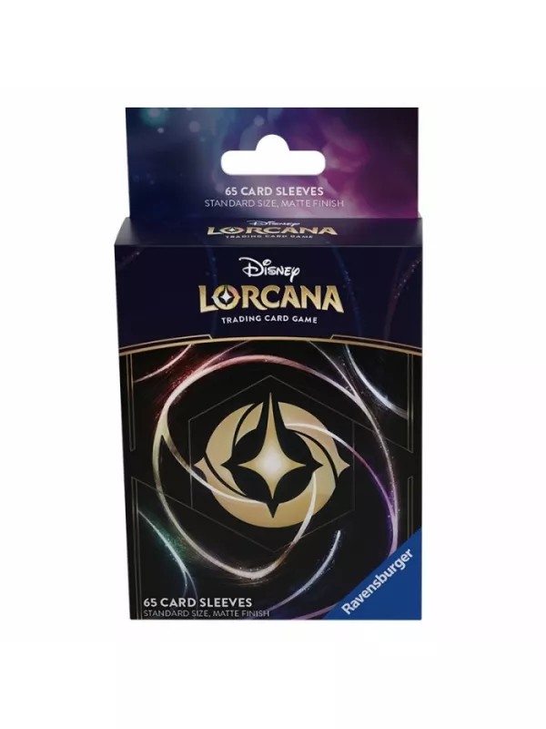 65 fundas de tamaño estándar con acabado mate y decoradas con el glimmer de Disney Lorcana TCG. Edición Shimmering Skies.